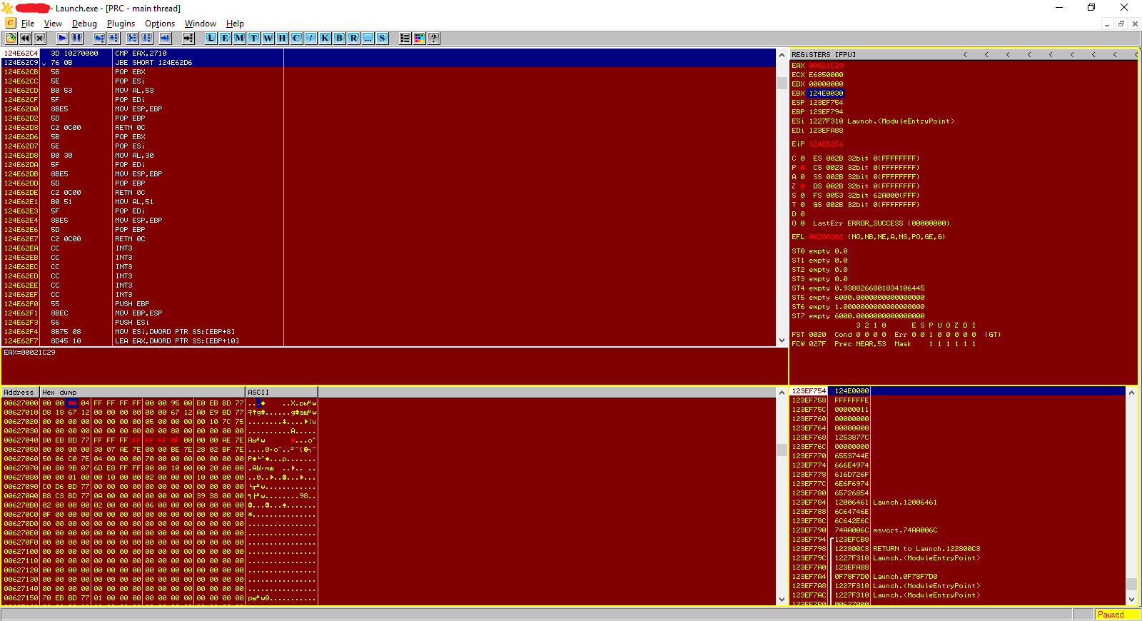 Забрасываем в отладчик файл Launch.exe и оказываемся на точке входа упаковщика.
